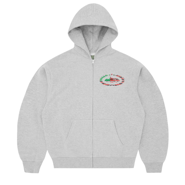 Chándal Corteiz en color gris, con diseño urbano y minimalista. Confeccionado en algodón suave de alta calidad, incluye sudadera con cremallera completa y pantalón a juego para un ajuste cómodo y moderno. Perfecto para un look streetwear versátil y con actitud.